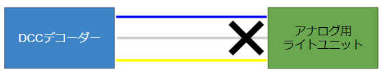 デコーダにライトユニットを取り付ける用にするには、以下の図のような改造が必要になります