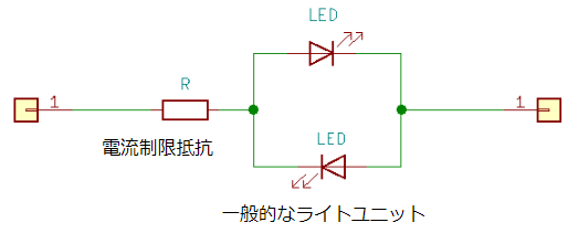 一般的なアナログ車両用のライトユニットの回路は以下のようになっています。