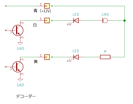 ●デコーダで黄線をONにした時のLEDが点灯する仕組み