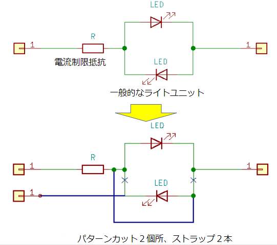 そこで、両極性化基板を使うと、ライトユニットを改造しなくても取り付ける事ができます。
