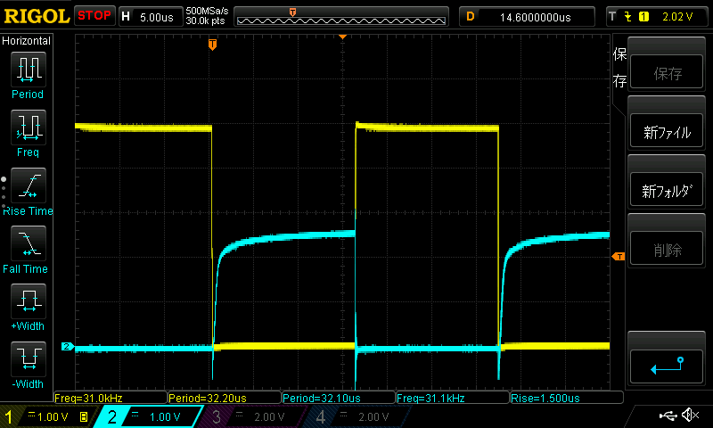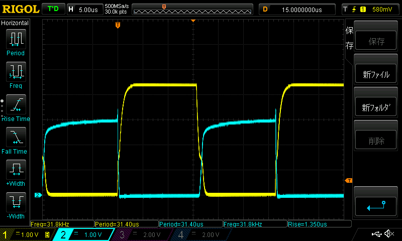 ※パッシブプローブで観測していますので、実際の波形からはちょっと変わっているかもしれません。