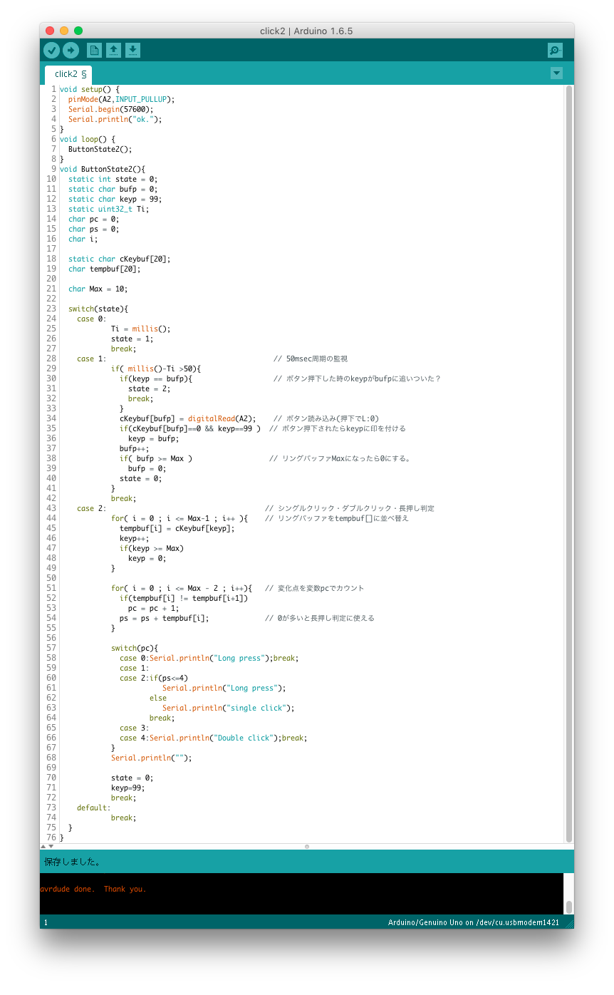 ボタンの状態を計算して、シングルクリック・ダブルクリック・長押しの
