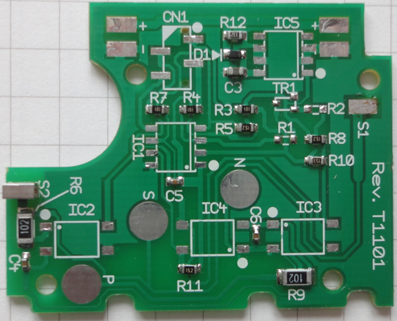 上っ側のICは三端子レギュレータのLM78L05、こういうパッケージもあるんだ。