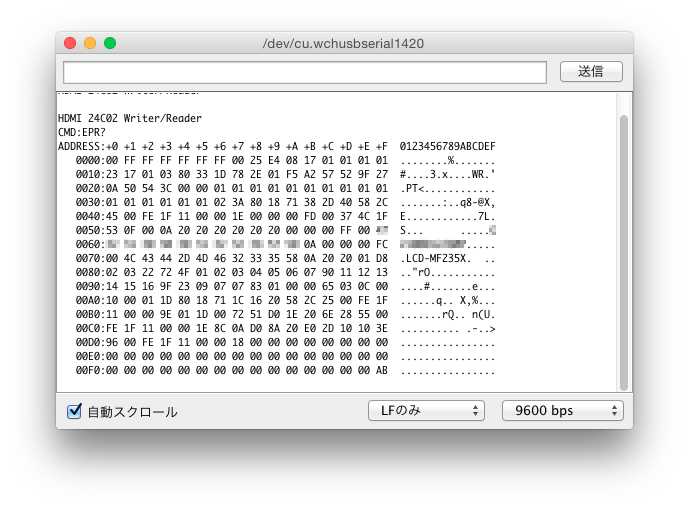 適当な液晶ディスプレイから、EDID情報を読みだして、自前のEEP-ROMに書き込み。