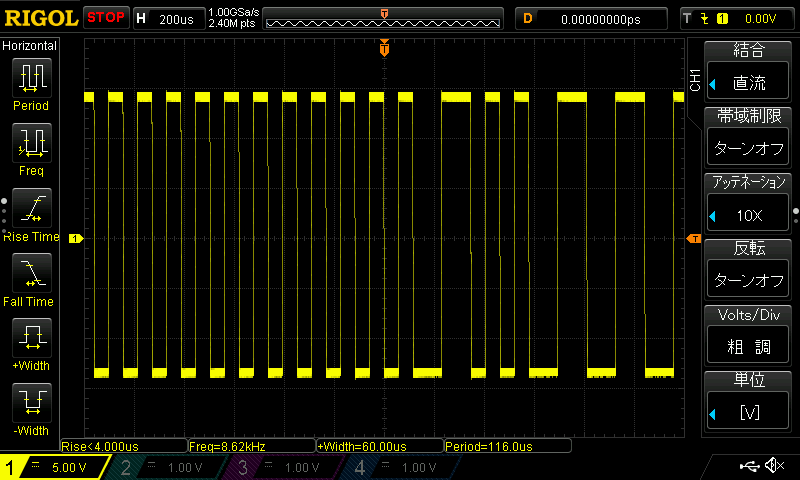 15Vのアダプタを使っても、DCC波形の電圧は変わらないんですね。