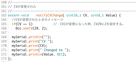 シリアルデバックでデコーダー内のCVの書き換わり状況を確認すると・・・
