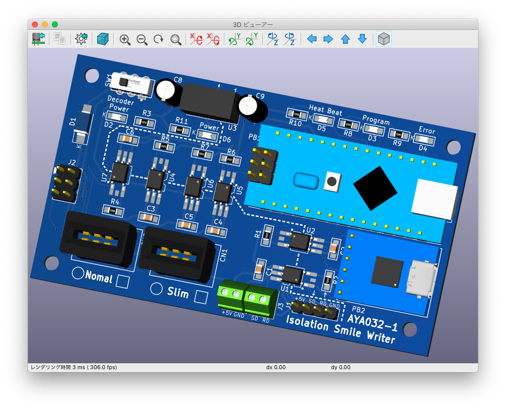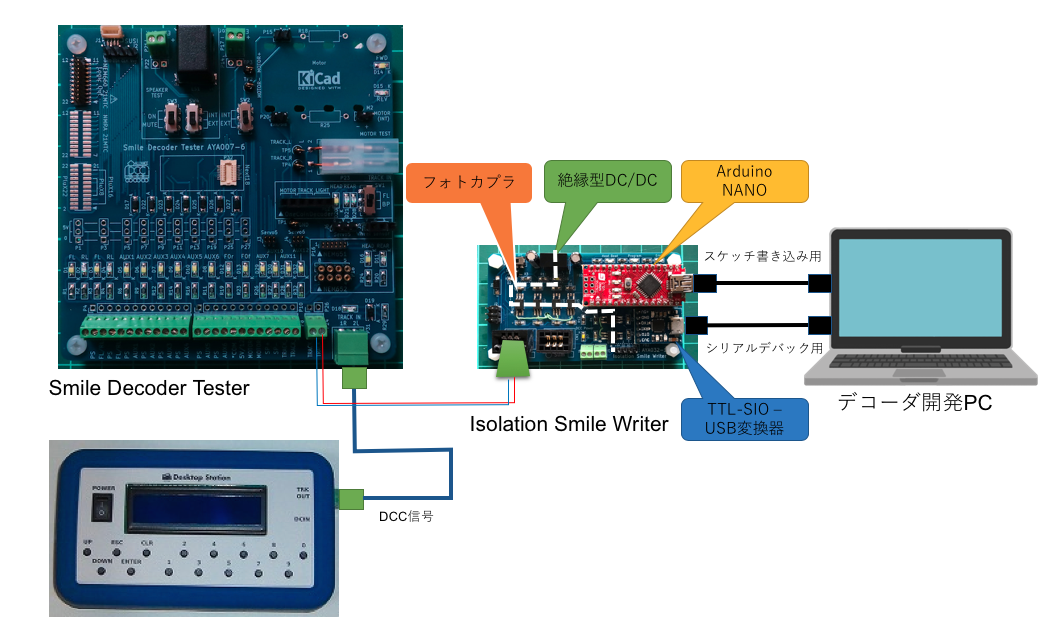 そこで、パソコンとDCC信号を絶縁させたIsolation Smile Writerを作りました。