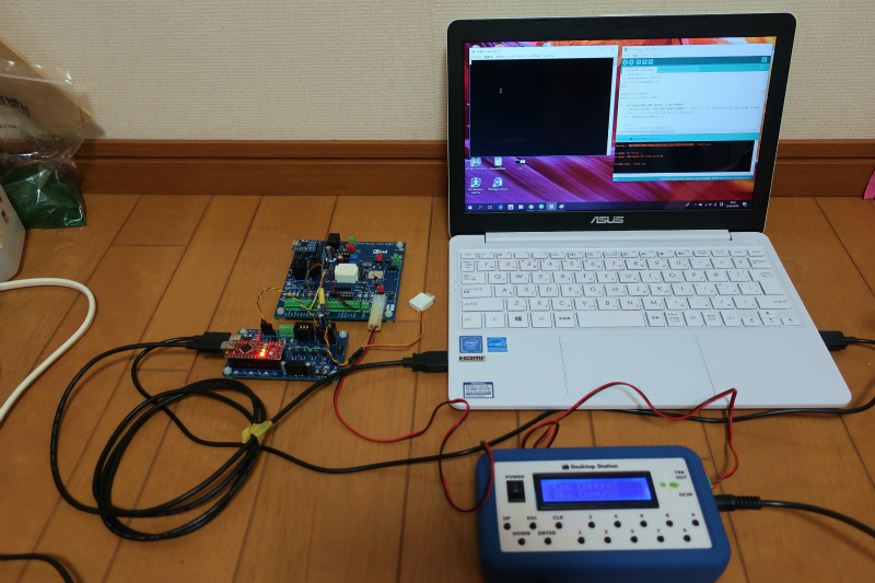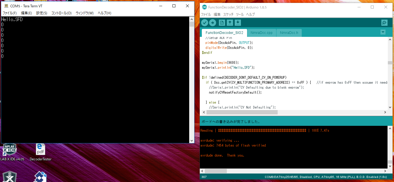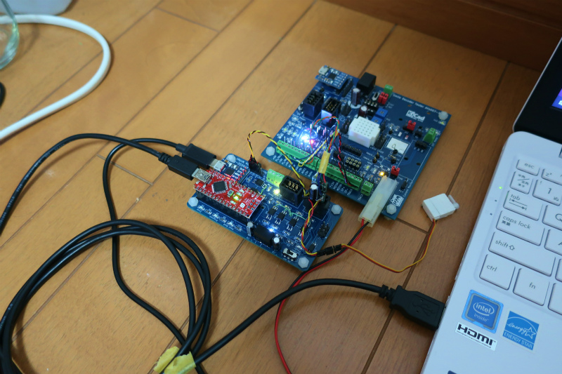 実装していまして、この状態でスケッチ書き換え、シリアルデバック、