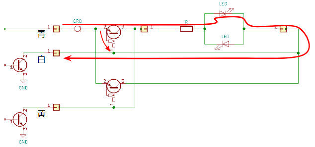 介してLEDに接続して、白線、または黄線に接続します。