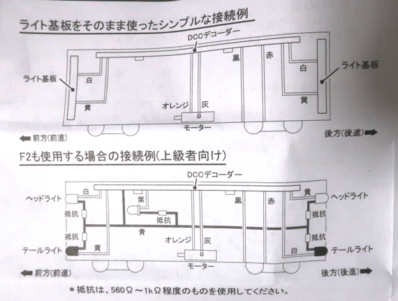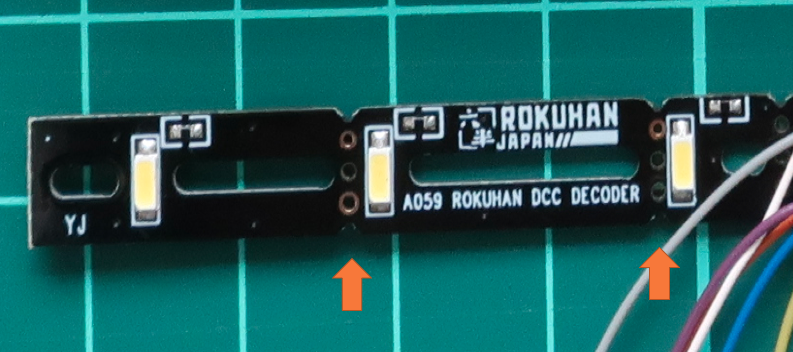 ロクハンのデコーダは両極性FXなので、ライトユニット に白・黄線を直接接続できます。