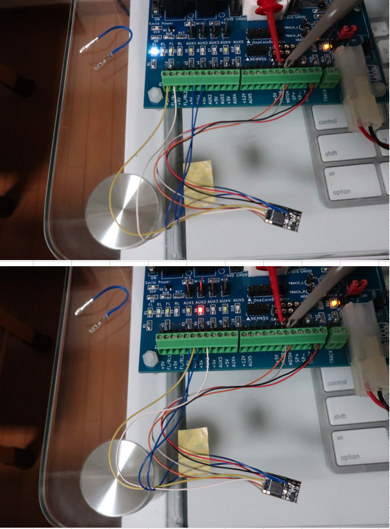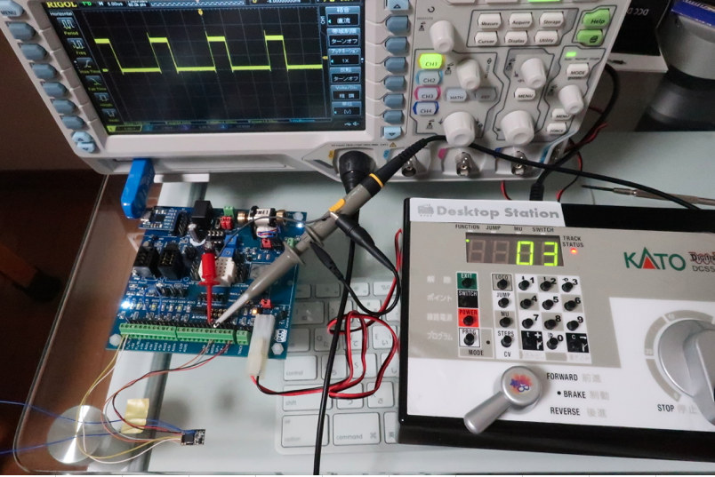 組み込める車両が無いのでデコーダテスターにつなぎました。