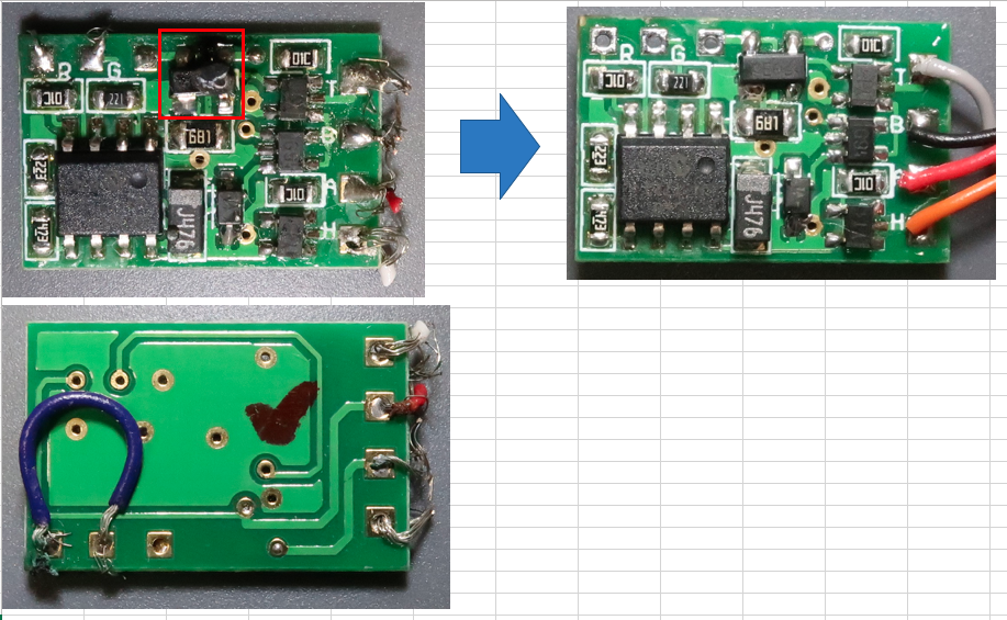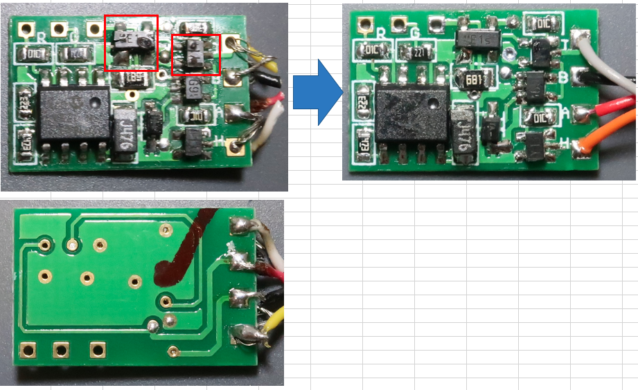 ※配線の色が間違っていますが、モーターデコーダだったかな?と勘違いして橙灰線を