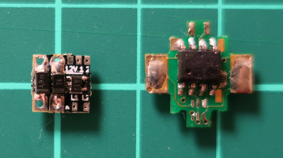 先頭車両のライト基板を無改造で片極性デコーダーにつなげちゃおうという