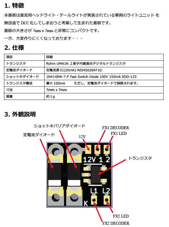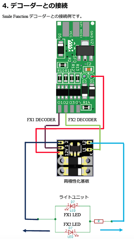 この基板を使うと無改造で片極性デコーダーを接続できます。