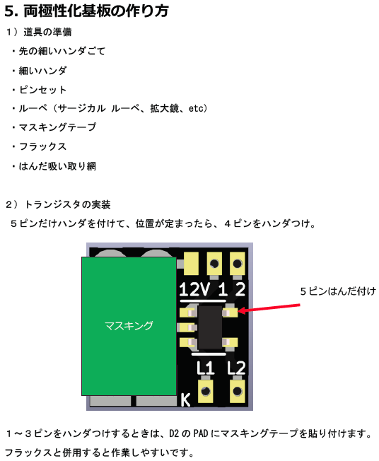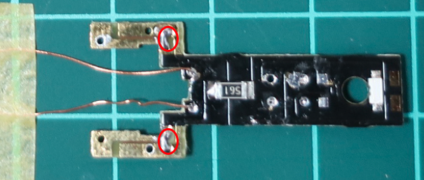 赤丸の部分をハンダ等でブリッジさせます。