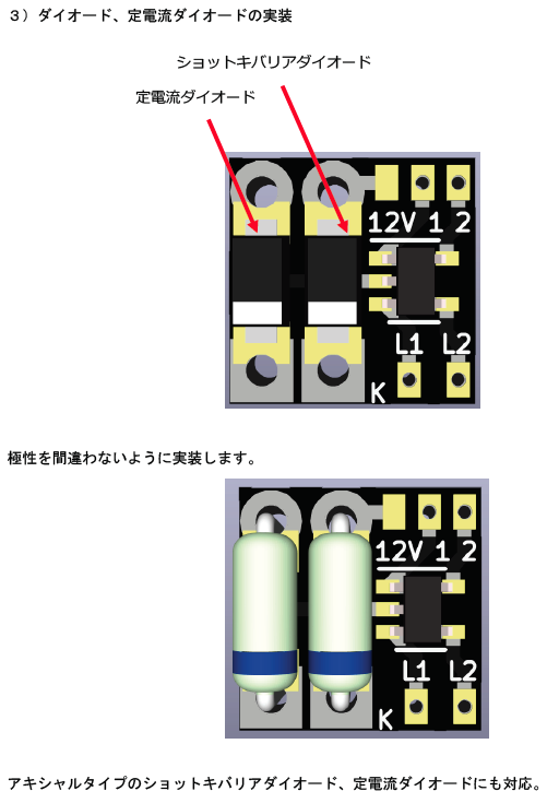 定電流ダイオードとショットキバリアダイオードはちょっと奮発して