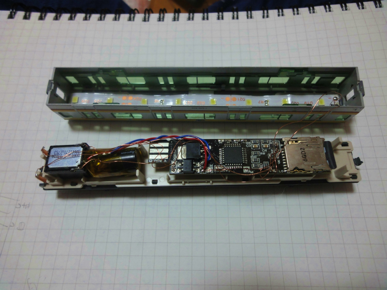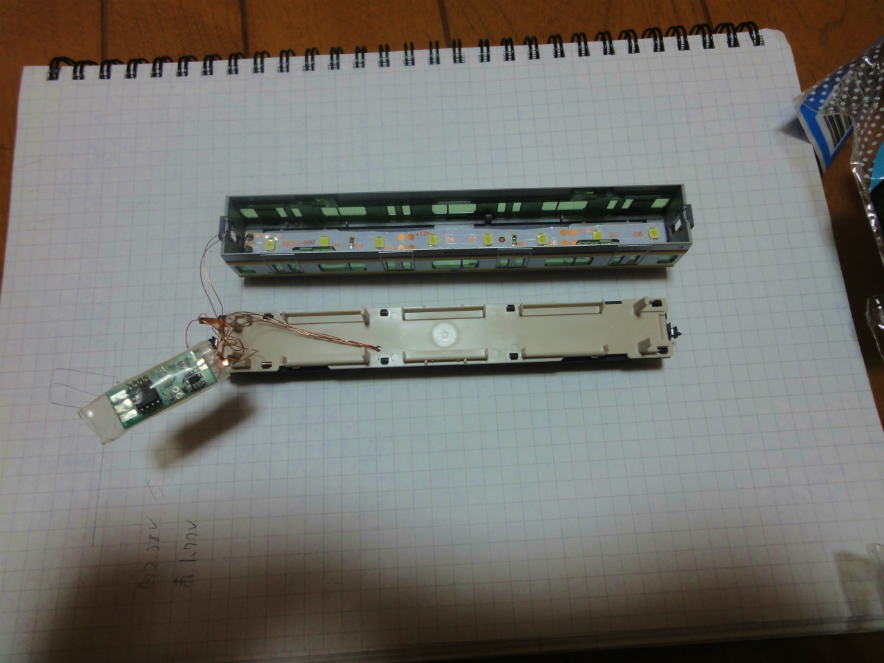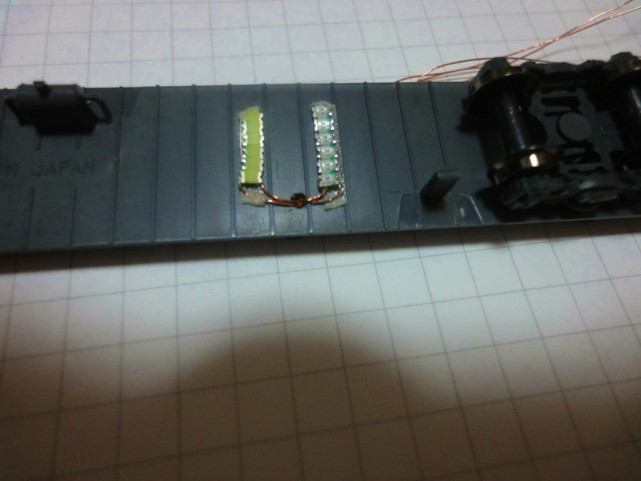 室内灯は、例のテープLED3コマを使って、折り曲げて長さを調整したものと