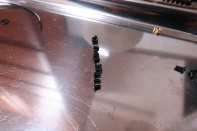 キサゲ刷毛でこすったことによる、ハンダの粉。