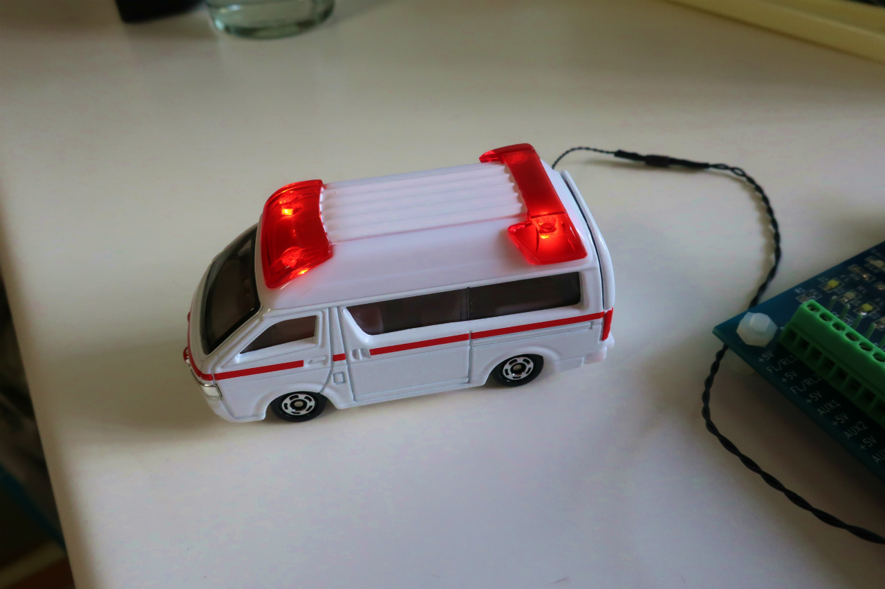 トミカの救急車をバラして表面実装LED4個とSmile Function Decoderを
