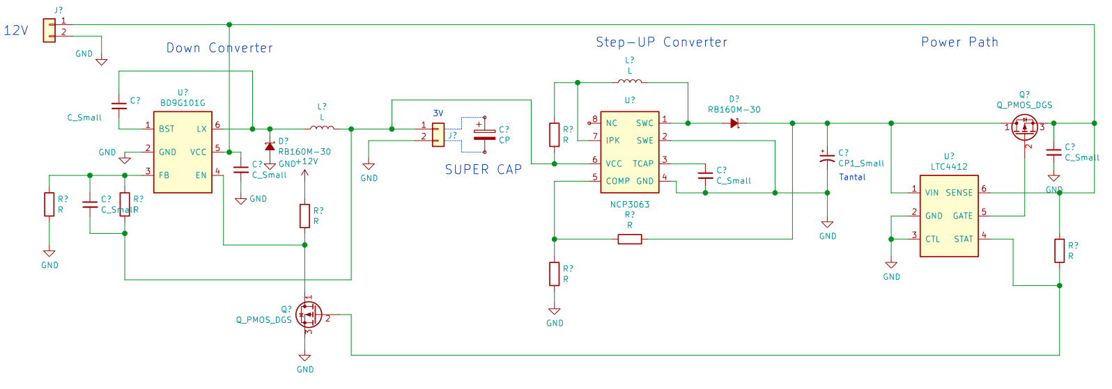 12Vから3Vに降圧、12Vの昇圧回路とPower Pathという理想ダイオードスイッチ。