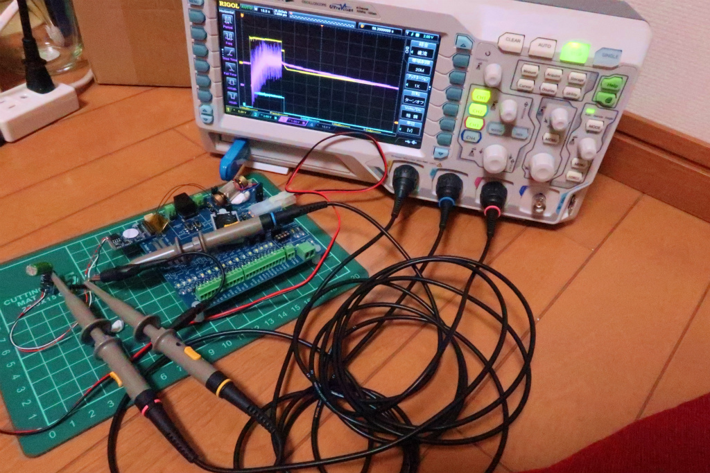 オシロスコープをつなげたかったので、ピンヘッダをかましてあります。
