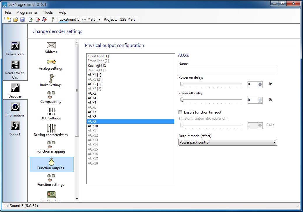 LokProgrammerのFunction outoutsでAUX9をPower pack controlに設定しないと