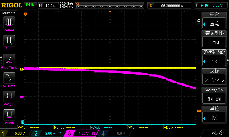 ちなみに黄色は12Vなのですが、バックアップ中は7Vが出力されていました。
