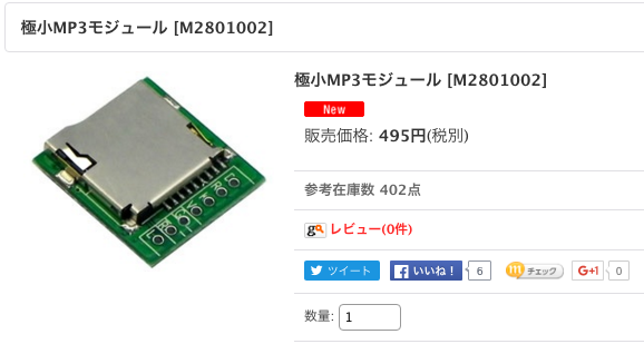 ちょっと前に、買っておいた aitendoの極小MP3モジュール [M2801002] を