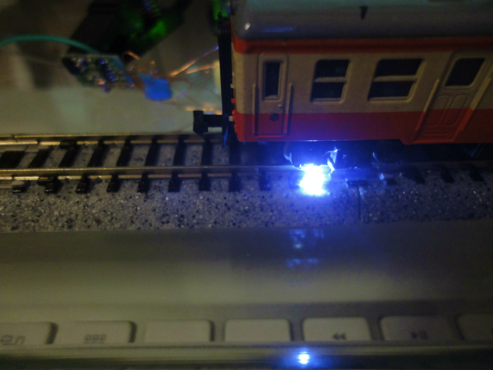 ギャップを踏んだ時に、レールが光る(スパーク)事象を再現してみました。