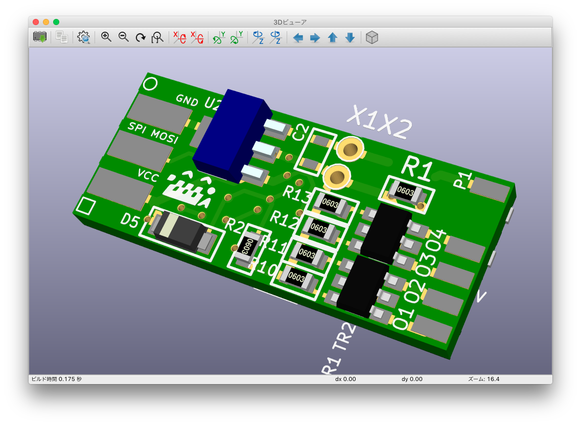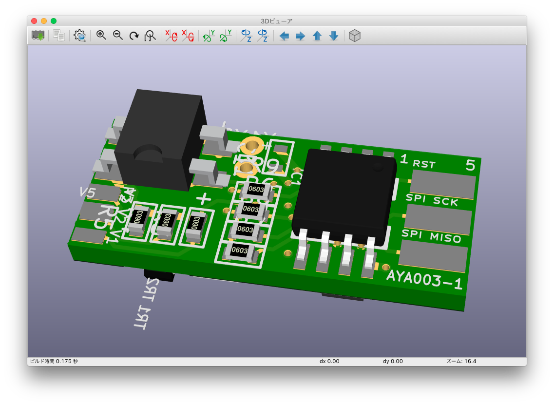 ネットワーク抵抗も外して、1608サイズに変更しました。