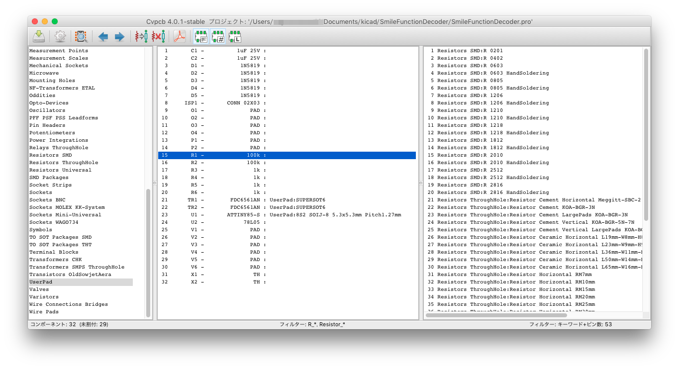 抵抗とコンデンサは0805にしたので、ちょっと作りやすいはず。