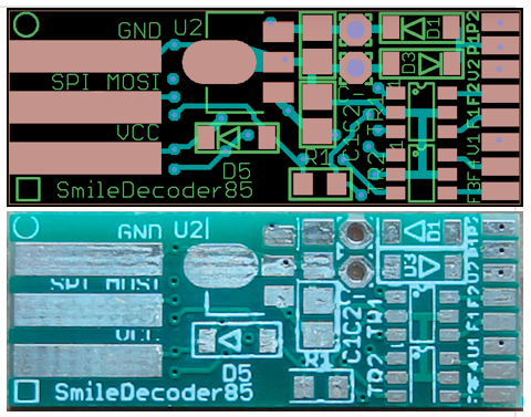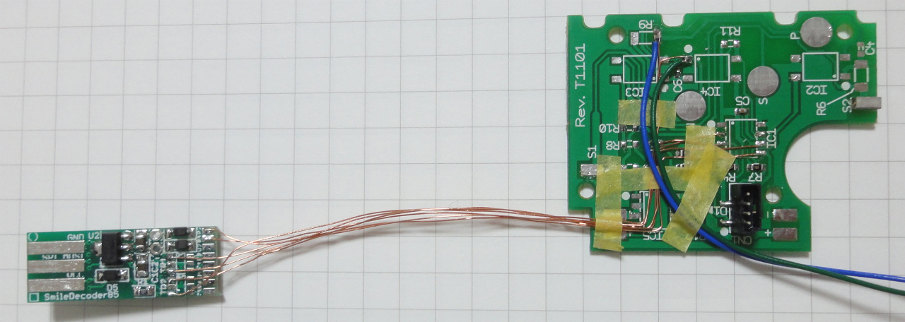 SmileFunctionDecoderを使って、ATTINY85のI/Oピンにポリウレタン銅線を使い