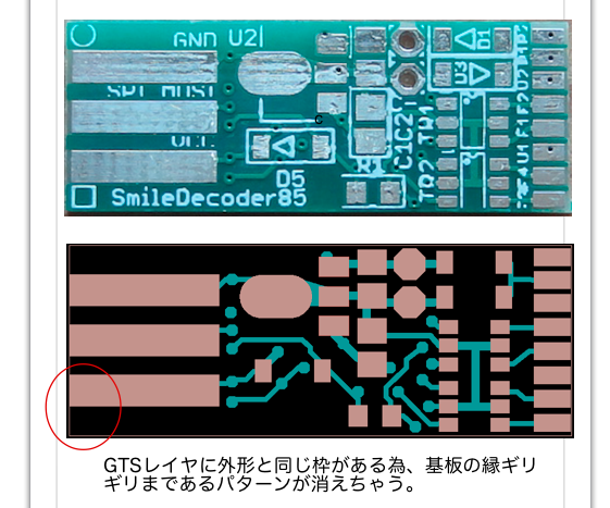 製造メーカーで、基板製造時にGTSレイヤを若干太らせるのでしょうか・・・