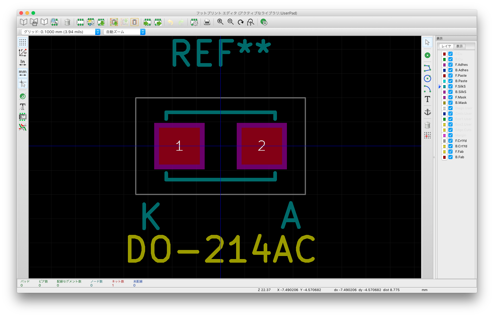 http://www.vishay.com/docs/88746/ss12.pdf を参考にしてフットプリント作成。