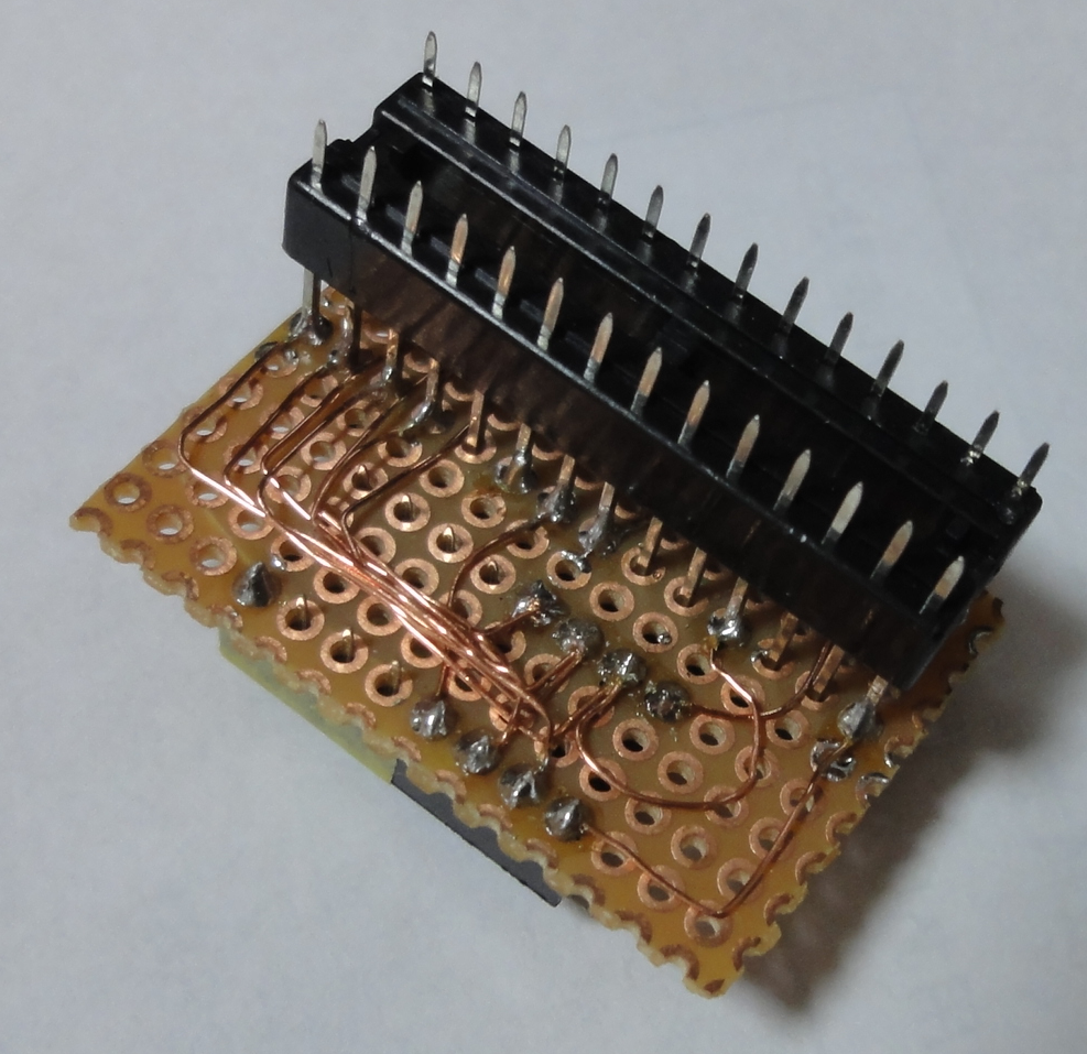 ATMEGA328P - ATTiny85 変換アダプタは、ユニバーサル基板を使って、