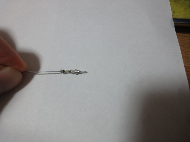 DCフェーダにピンとスズメッキ線を取り付けます。