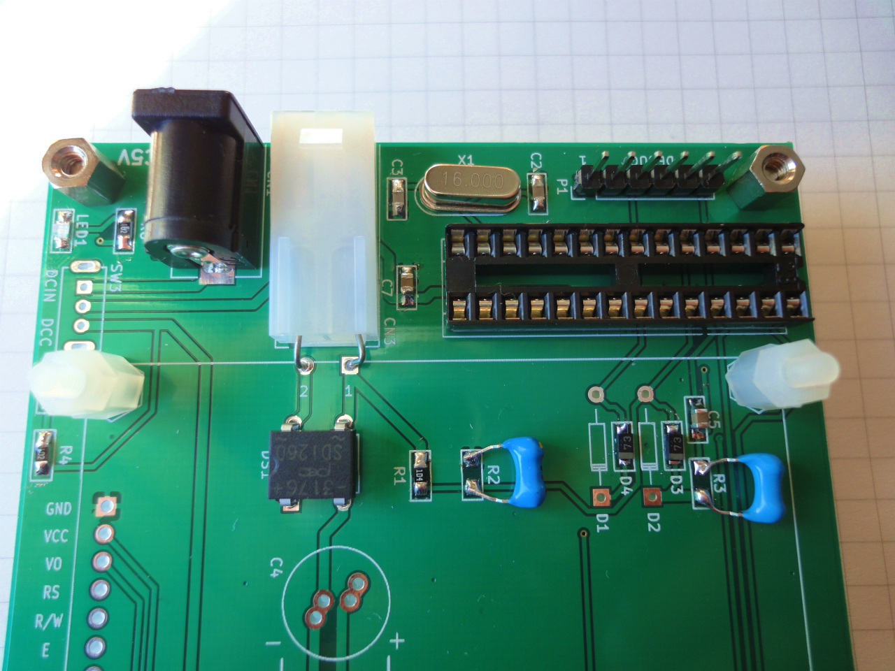 Atmega328Pと、三端子レギュレータ(SMDタイプ)、可変抵抗器、スイッチ、ピンヘッダソケット、10uFのセラミックコンデンサ、ダイオードスタック、5mmのスペーサー、液晶も一緒に買っておかないとなー。