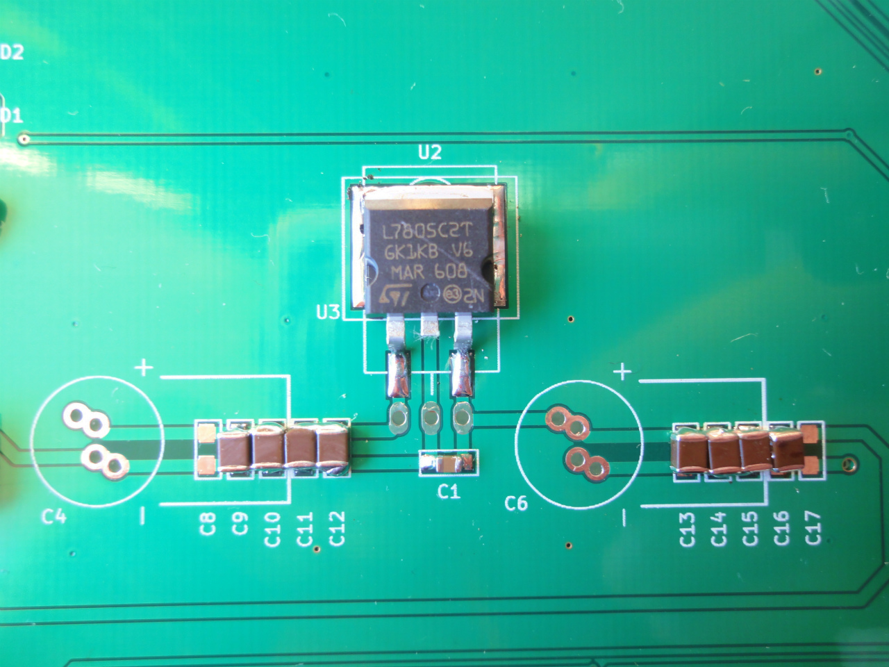 抵抗、コンデンサ、LED、三端子を表面実装にしましたが、Smile Decoder,Smile Function Decoderと違って、基板が広いので余裕です(^^
