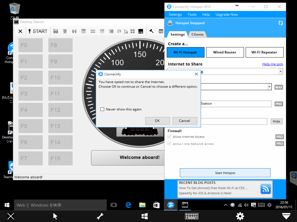 スマイラーさんからの情報で、Connectify Hotspot 2016を使うと