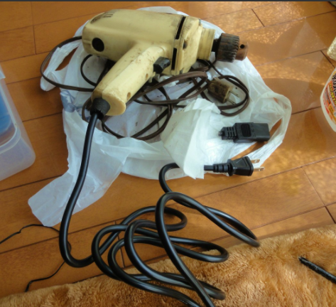 工具は実家に40年前から存在するドリルをメンテナンスして使うことに。