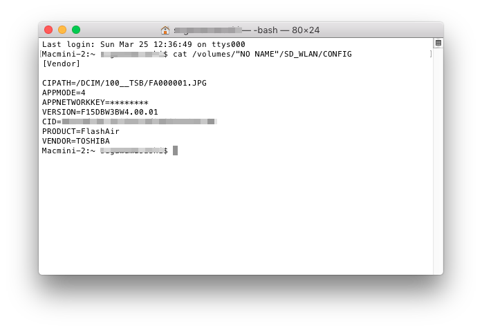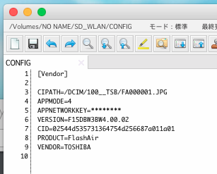 cat /volumes/"NO NAME"/SD_WLAN/CONFIG