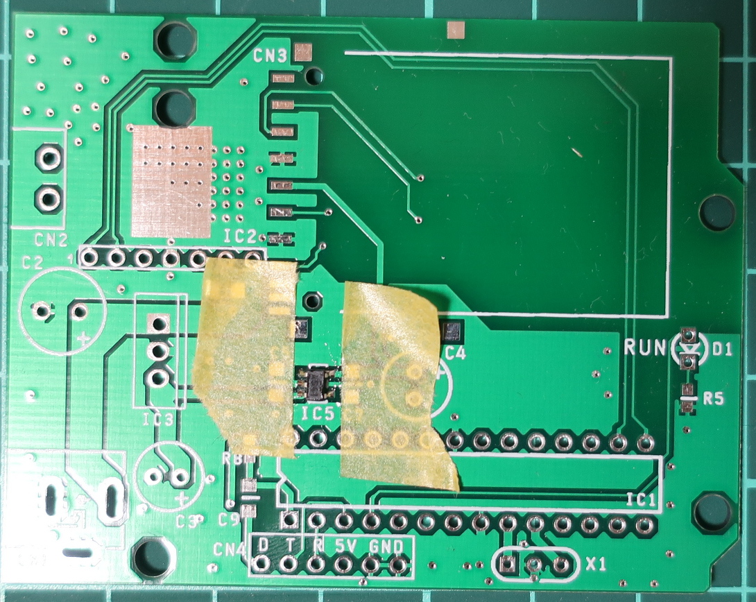 IC5 NJM12888 は、周りのPADにハンダが付かないようにマスキングして実装しました。