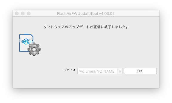 無線LAN搭載SDHC/SDXCメモリカードFlashAir™ソフトウェア更新ツール