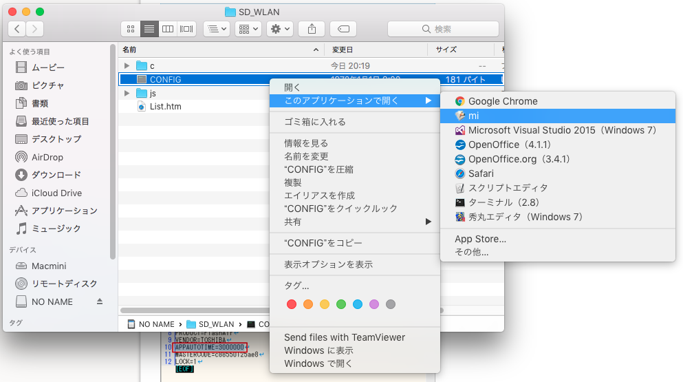 /Volumes/(ボリュームラベル名)/SD_WLAN/CONFIG