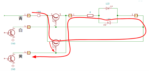 ●デコーダで黄線をONにした時のLEDが点灯する仕組み