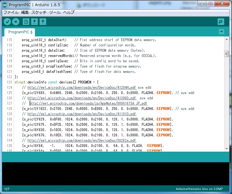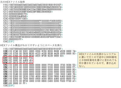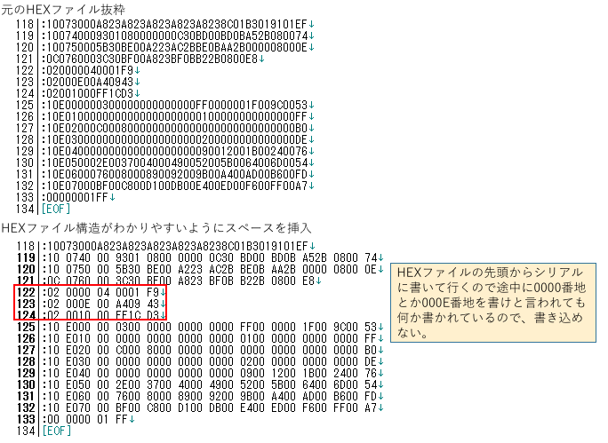 ぬっきーさん配布のHEXファイル構造でFLASHデータとEEPROMデータの間に