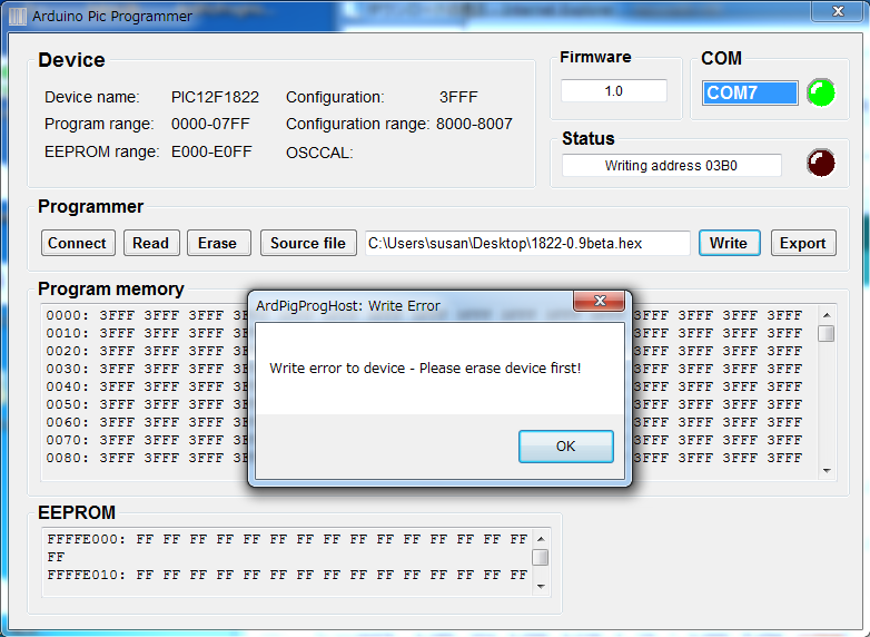 言われても、イレースしないと書き込めないので、エラーになっていました。