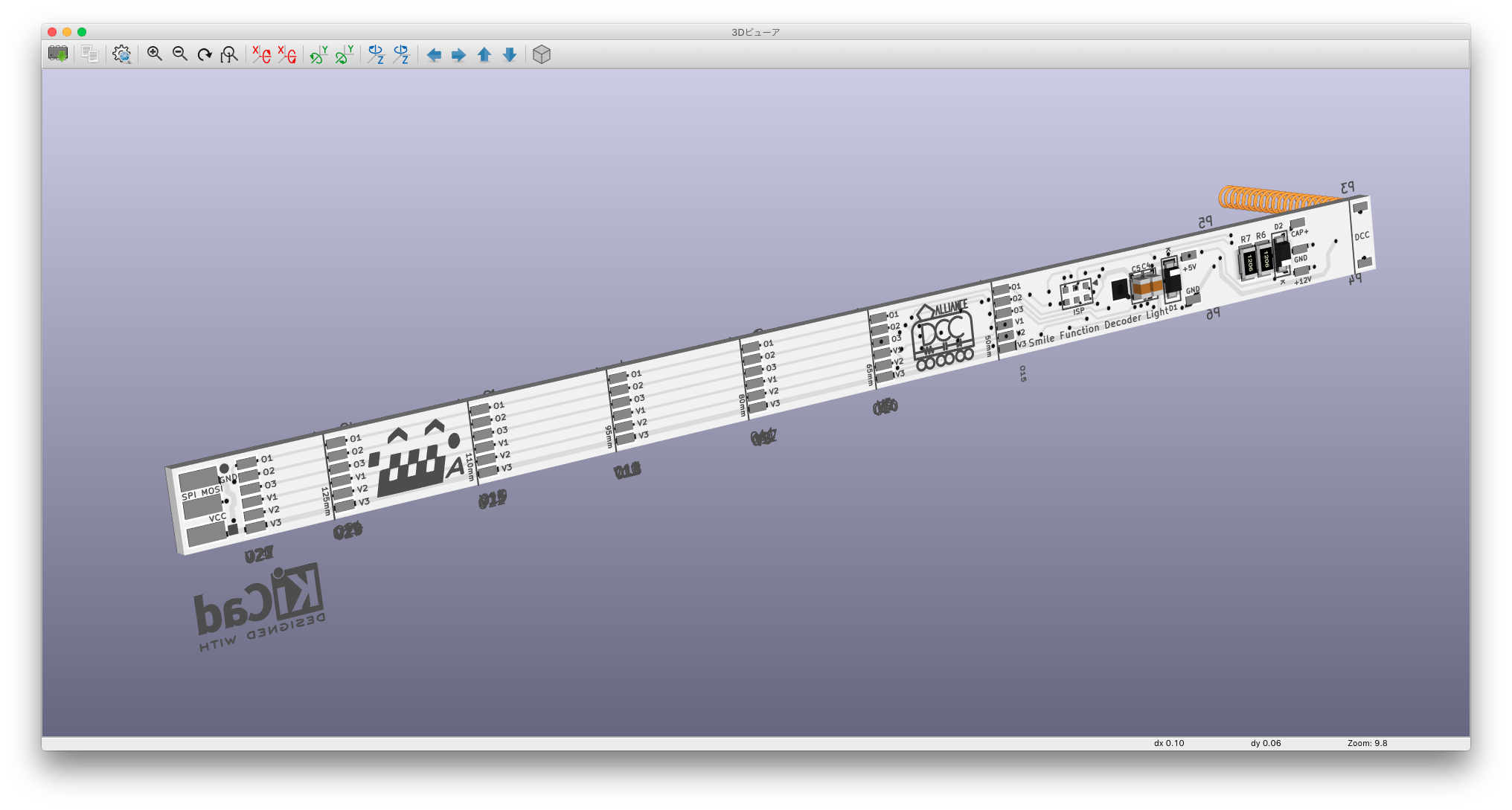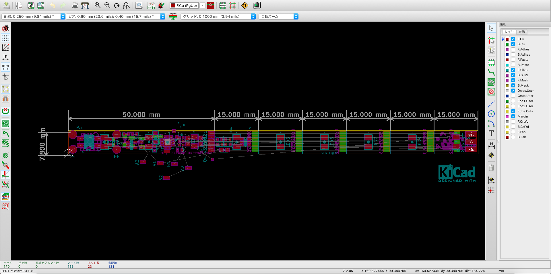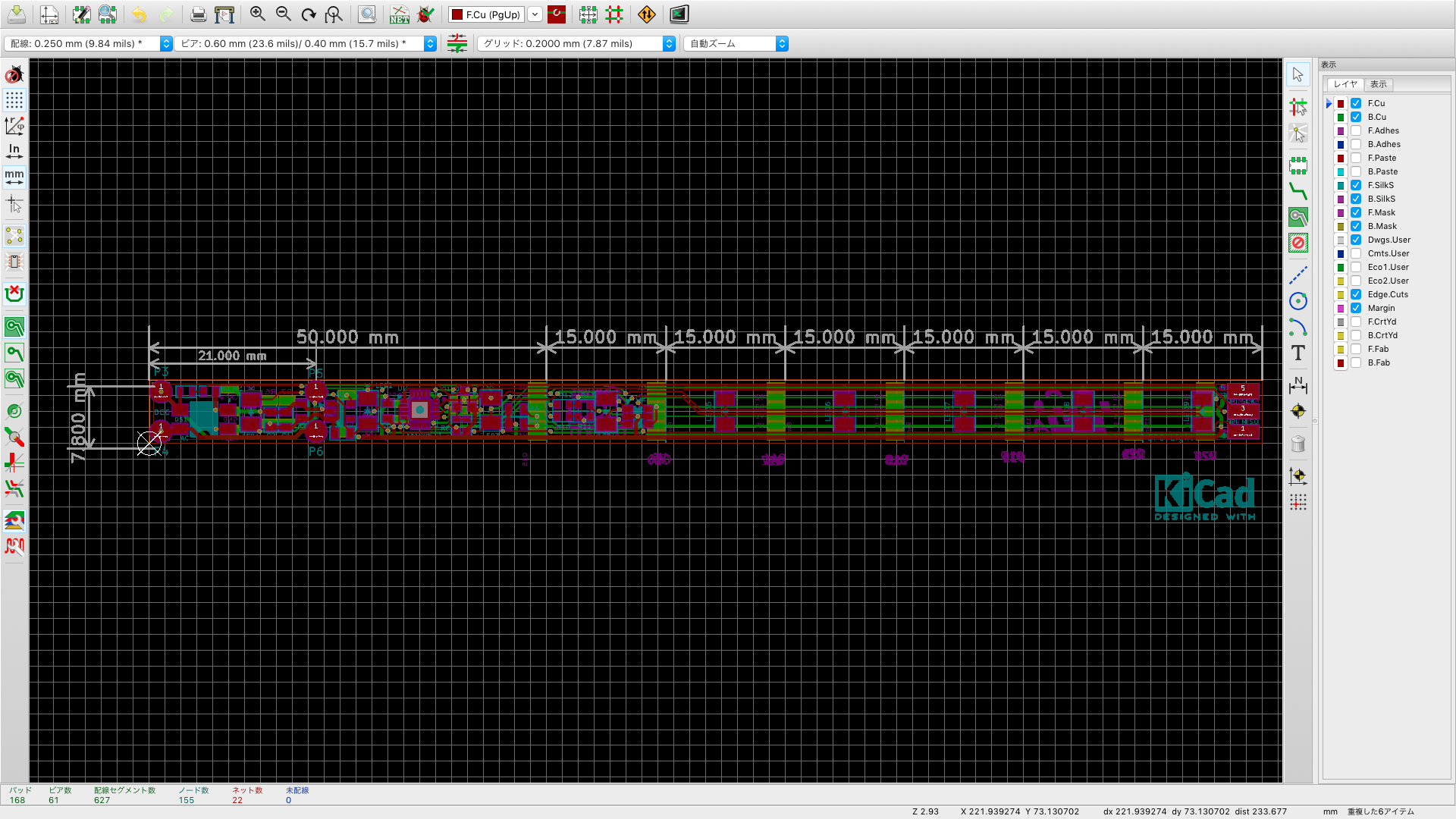とりあえず、基板の長さを140mmにして、15mm間隔で切り離せる様にしました。