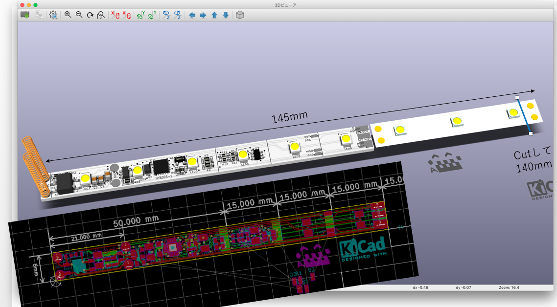 気がついたら、基板の大きさが 8mm x 140mm x 0.8mm になっていました。