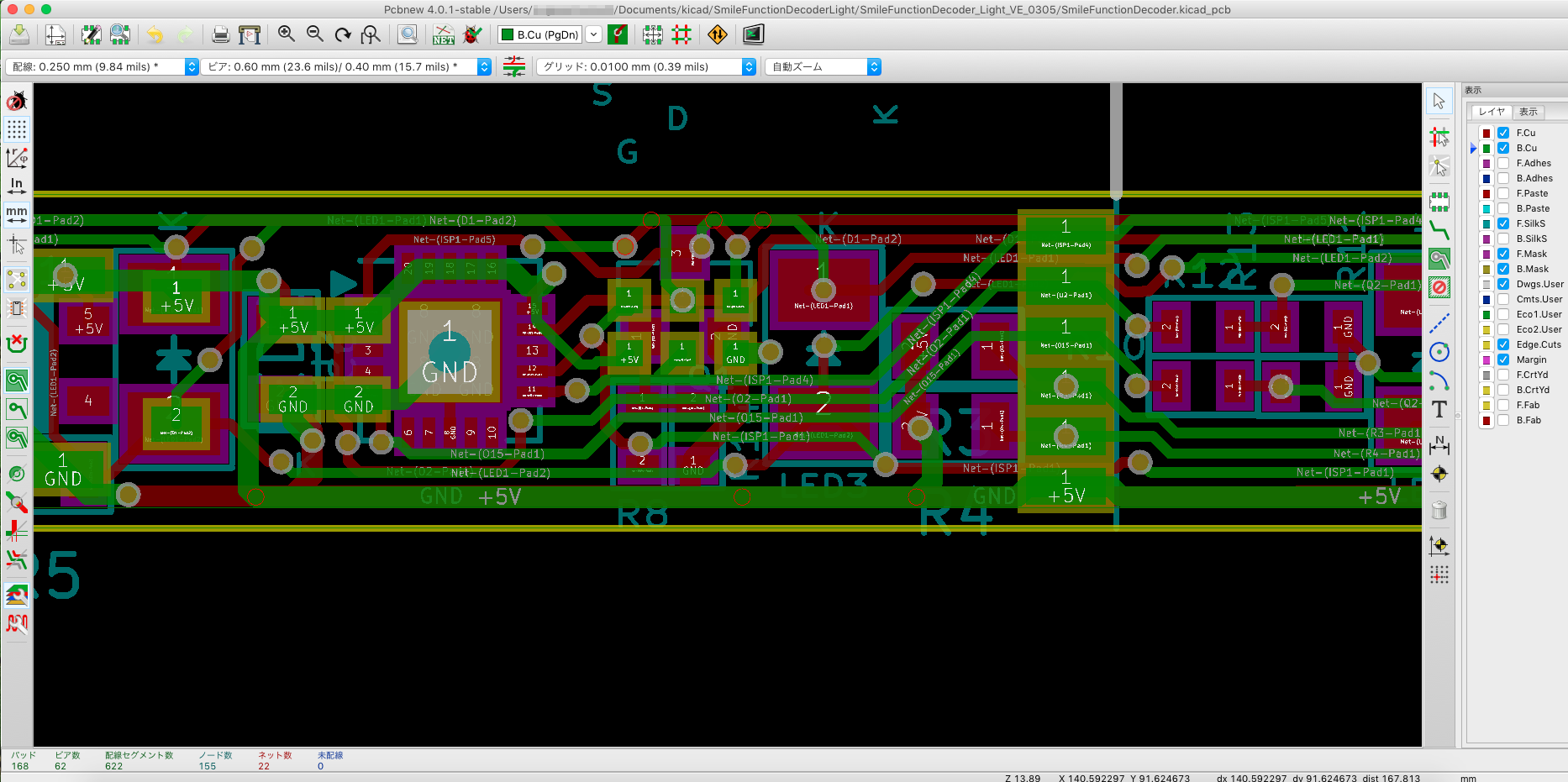 押しのけ配線機能の影響で、基板外形から+5Vラインがはみ出していますw